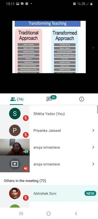 The key focus of the resource person, Ms Anuja Srivastava, was on the transformed teaching approach in today's time. She discussed about the activity-based teaching methods to keep students engaged during online classes. Further, she guided the teachers with various strategic tips, simulations, and online sites for achieving teaching objectives. It was an informative workshop and was a great learning experience for all the participants. |