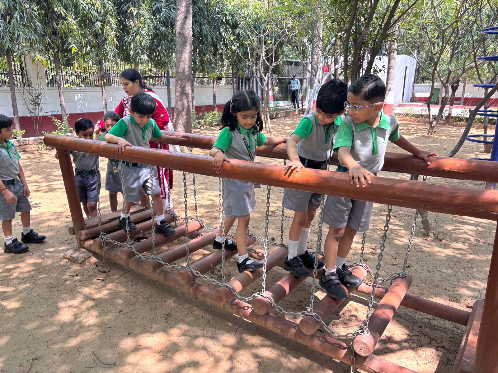 The Kids’ Play Area at Samsara The World Academy is a vibrant, safe, and thoughtfully designed space for young learners. Equipped with swings, slides, see-saws, and engaging play features, it promotes physical activity, balance, and coordination.